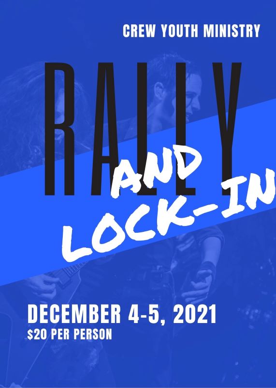 We'll travel in the church vehicles to the rally. Afterwards, we'll take a dinner break and then head back to church for an overnight lock-in. Students have the option to attend both the rally and lock-in, or one or the other.